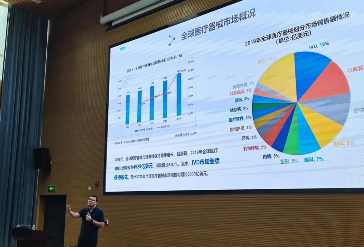 尹力主要从“为什么选择医疗行业?”、“在医疗器械公司工作做什么?”和“新产业公司介绍”三个方面进行分享。