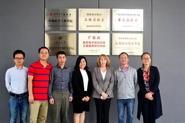 2017年11月8日上午,美国工程院院士、加州大学戴维斯分校教授Katherine W. Ferrara来深圳大学医学部生物医学工程学院访问参观,Katherine W. Ferrara教授参观了医学超声关键技术国家地方联合实验室,并与医学超声方向青年教师进行了学术座谈。我院陈昕副院长、钱建庭教授、陆敏华教授、张新宇副教授及胡亚欣、林浩铭、陈冕等青年教师出席座谈会。