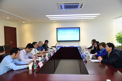 Wendy Alexander和王晖分别代表英国邓迪大学和深圳大学签署合作学分连接协议,并对相关问题进行了深入交流。