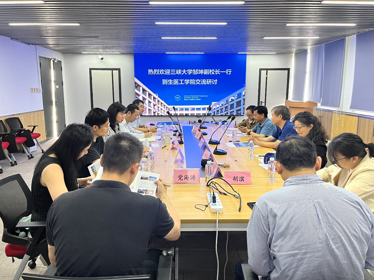 2023年4月18日上午,三峡大学一行来访我院。三峡大学原副校长邹坤、三峡大学办学百年工作专班负责人王国芳、生物与制药学院党委书记杨昌英、党委委员王慧、张亚雄、胡滨,深圳大学生物医学工程学院党委书记陆敏华、院长陈昕、副院长董海峰、医学检验技术系苏磊、杨华艳等出席本次会议。