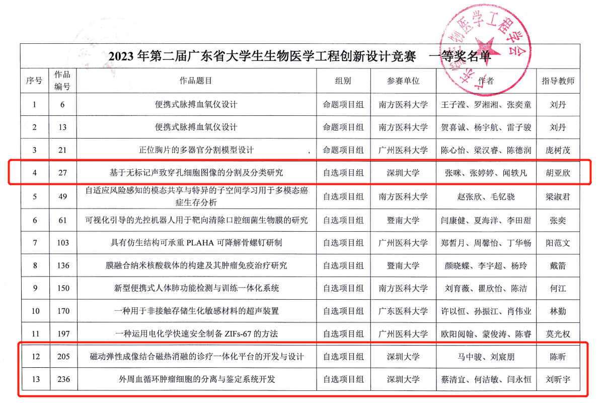 深大3支获得一等奖的队伍均来自医学部生物医学工程学院,他们分别是: