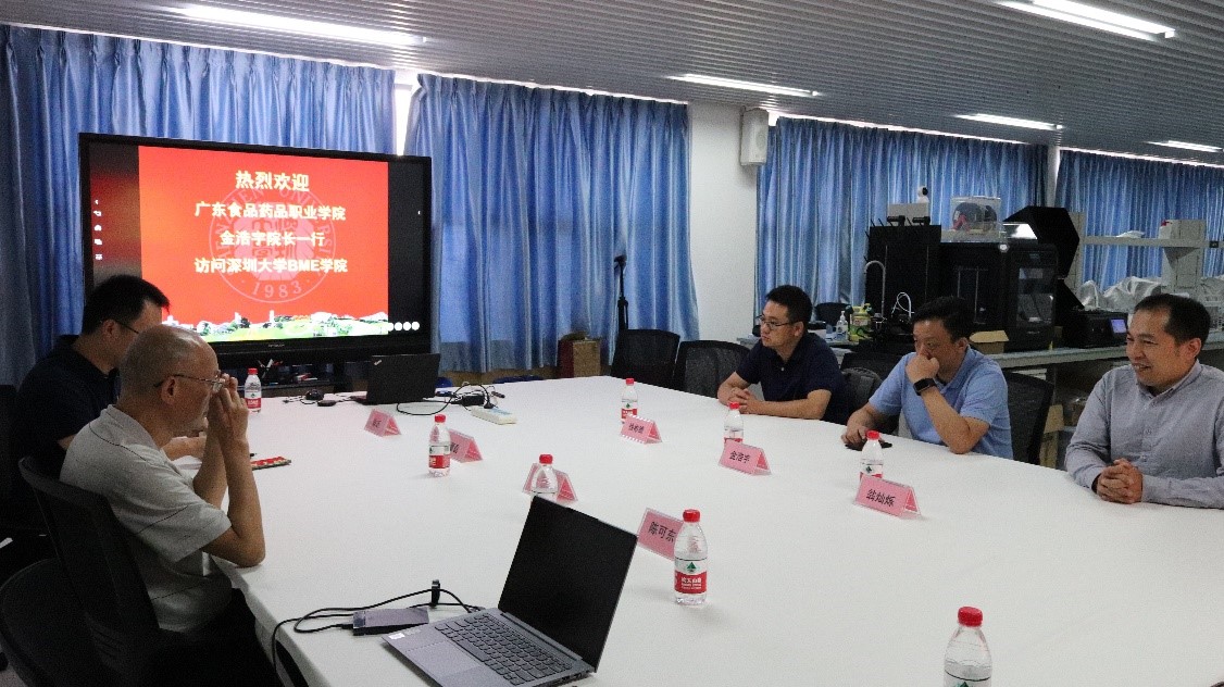 Careers2023年11月1日下午,广东食品药品职业学院金浩宇院长、徐彬锋老师、翁灿烁老师一行到访深圳大学医学部生物医学工程学院,与深圳大学医学部副主任、生物医学工程学院院长陈昕、教学实验中心主任汪天富、副主任董磊等,就医工课程改革、人才培养等相关问题进行交流探讨。