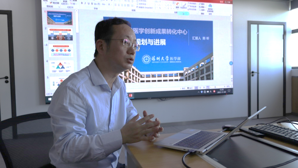 首先,陈昕对深圳大学医学创新成果转化中心的规划和发展进行了介绍。陈昕提出,在高校进行科研成果转化的过程中,通常会遇到缺乏工程团队、缺少资金资源支持等问题。他强调,深圳大学医学部需要发挥深圳市的产业优势,打造医学创新成果转化平台,将医学部的科研成果与产业紧密结合。同时需要把握好人才资源,培养创新创业人才。并以成果转化平台为依托,链接各方资源,最终打造高校、企业、医院等多方共赢的局面。