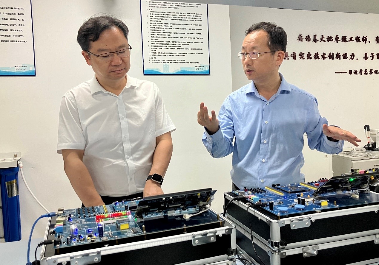 接着,陈昕带领众人参观了生物医学工程专业专用实验教学设备和教材,先后探访了医电创新实验室和深圳大学医学创新成果转化中心。