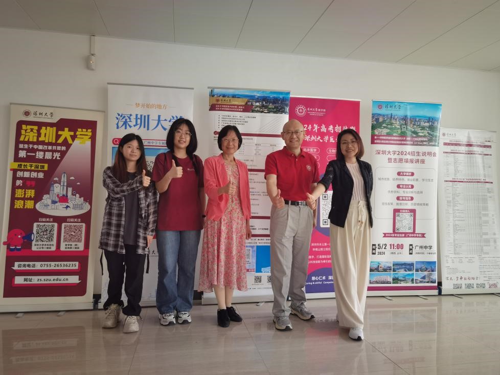 Careers为进一步扩大深圳大学的影响力,2024年5月2日,深圳大学医学部生物医学工程学院(以下简称生医工)再次组成招生宣传小组,启程前往广州中学凤凰校区(以下简称广中)开展招生宣讲活动,旨在向学生家长介绍深圳大学的招生政策、专业优势及培养方案。参加的成员有生物医学工程学院老师叶继伦、曹雯,口腔医学院老师陈献雄,以及生医工学生葛小玲和刘婉婷。