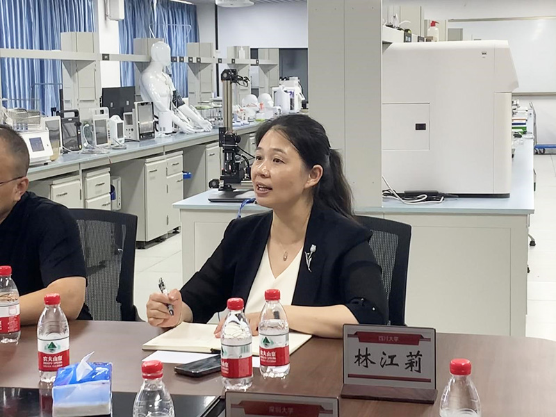 参观完毕后,众人落座会议室。林江莉对深圳大学医学部生物医学工程学院设计的“9+2课程体系”予以高度评价。她还详细阐述了四川大学在产教融合方面所做的努力。她提到,四川大学敏锐地捕捉到了产业发展与教育改革的交汇点,率先创立了产业学院,特别聚焦于智能医疗器械这一前沿领域,开设了微专业,以应对医疗健康行业日益增长的需求。