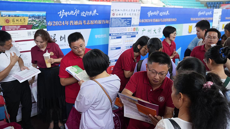 在肇庆市,共进行了四场招宣活动,分别是在肇庆市体育中心举办的肇庆市2024年普通高考志愿填报咨询会,以及肇庆中学、肇庆一中和肇庆龙涛外国语学校宣讲会。招生小组全体成员均为到场的家长和同学进行了耐心讲解和细致介绍。