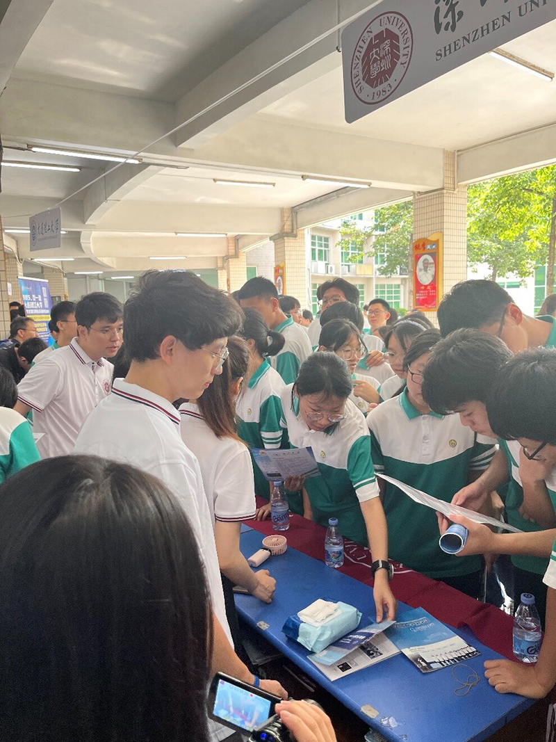 咨询过程中正值学校课间休息,吸引了大量高一、高二同学们驻足,现场气氛热烈,同学们都对深圳大学给予了非常大的肯定,对深圳大学生物医学工程专业产生了浓厚的兴趣,并表达了强烈的报考意愿。