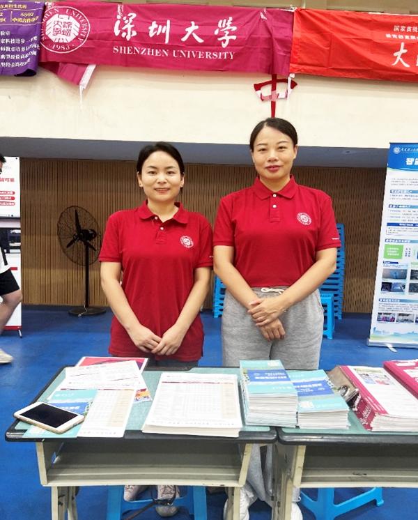 6月24日,生物医学工程学院的贺婷、张一帆、余夏夏和吴佳英子四位老师参加了在绵阳师范学院举办的绵阳市招生咨询会。上、下午两个时间段,深圳大学摊位前人头攒动、气氛热烈,四位老师在咨询会上耐心解答了家长和学生们关于学校的招生计划、保底录取排名、优势专业等问题。一天过后,招生材料分发殆尽,一些家长和学生表示了强烈的报考意愿。