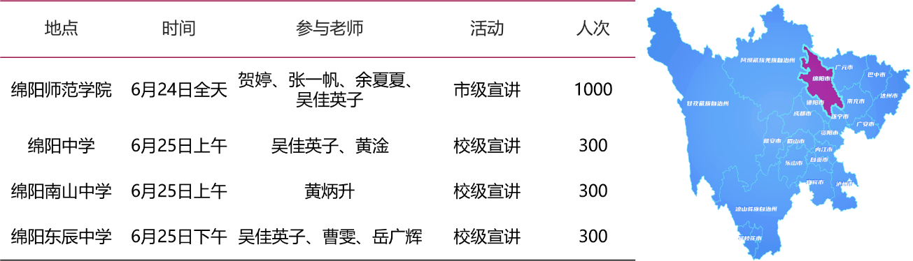6月23日晚,四川省高考成绩公布。为了抓住出分后学生家长迫切了解报考高校具体情况的时间节点,8位老师于6月24日及6月25日赴绵阳开展招生宣传活动。