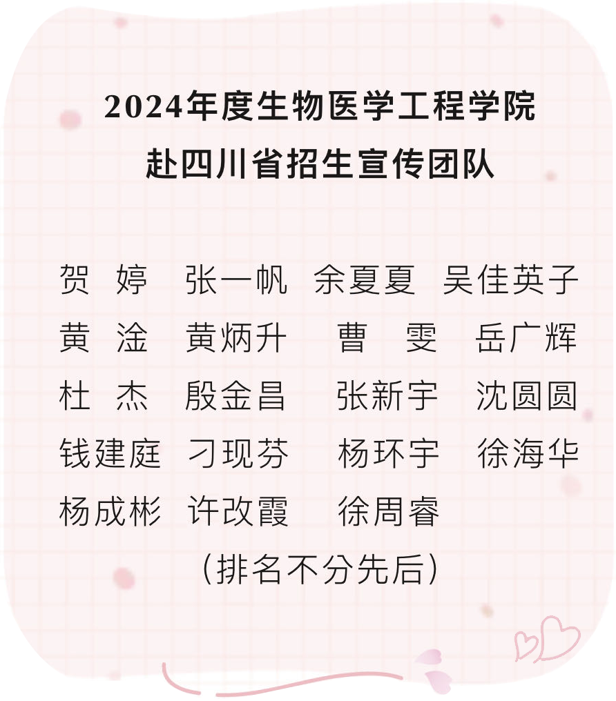 2024年生物医学工程学院赴四川省招生宣传工作获得圆满成功。学院期待在新学期与大家相遇。让我们一起脚踏实地,实事求是,用辛勤与汗水共同书写属于新时代新青年的崭新华章!