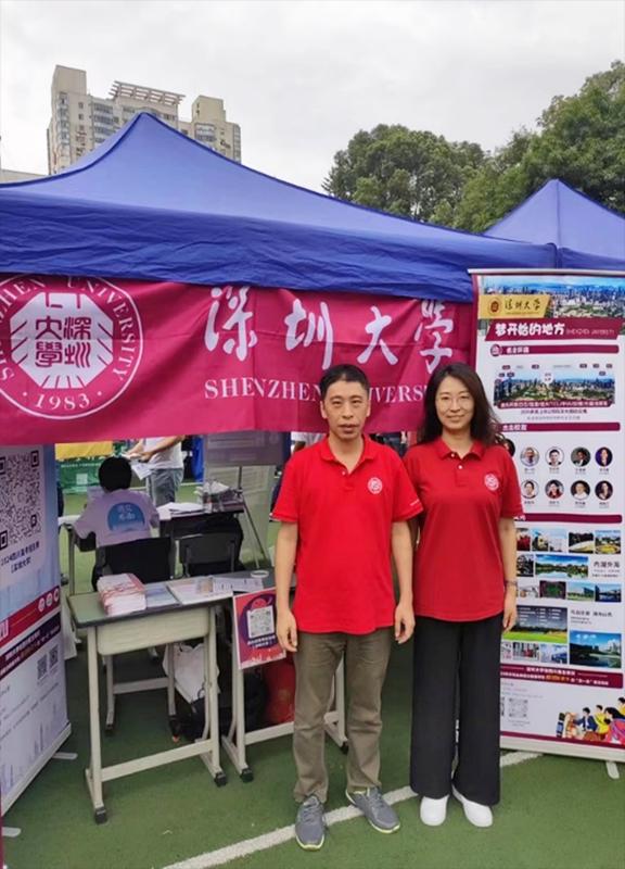 6月24日,学院还安排多名老师参加多所重点中学的招生咨询活动。上午,李建娜老师和贾春平医生来到成都七中万达学校。活动中,通过面对面的交流,两位老师为学生和家长们解答了各种报考疑问,详细介绍了学院的招生政策、专业优势、课程设置及毕业生的就业情况等。下午,两位老师又和岳广辉老师一同前往实验外国语学校,参加了一场市级宣讲会。宣传过程中,有不少考生和家长前来深圳大学的摊位进行交流,表达报考意愿,老师们也根据往年录取情况帮其分析录取概率,增加了意向考生报考的信心。