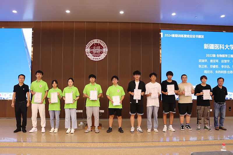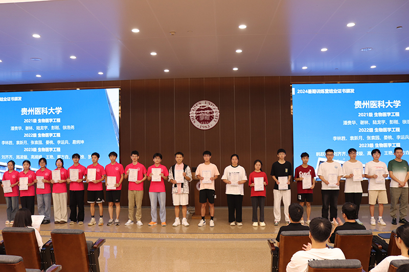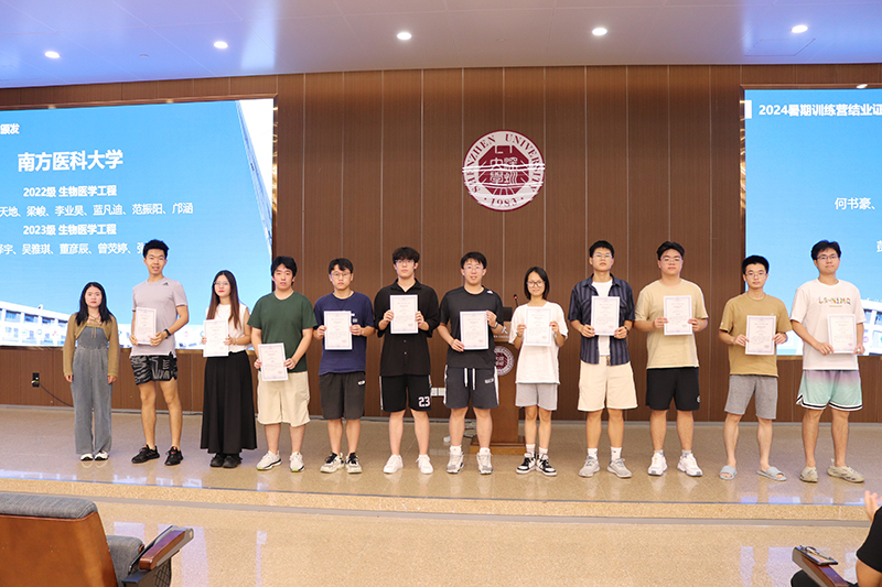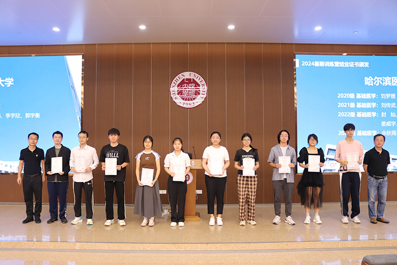 2024年8月12日,医工融合卓越工程师暑假训练营结营仪式在深圳大学丽湖校区启明楼举行,参加结营仪式的老师分别是哈尔滨医科大学李佳琦、贵州医科大学詹桂兰、中南民族大学曹汇敏、湖北科技大学吴迪、深圳大学陈昕和董磊。