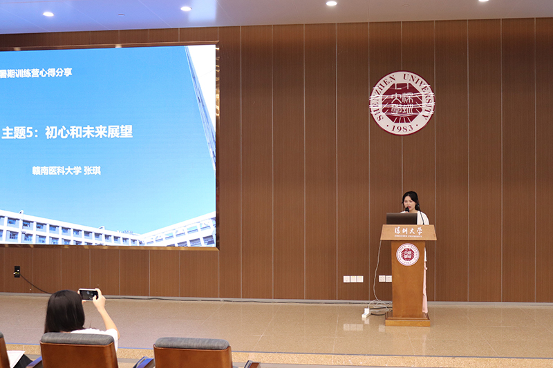 来自赣南医科大学的张琪同学就“初心和未来展望” 发表了感言。在发言中,她分享了她参加医工融合卓越工程师暑期训练营的初衷、学习体会及未来规划。她提到,创新实验室的学习模式给她留下了深刻印象,尤其是个人学习内容的总结和汇报。张琪认为学习是终身受益的过程,未来她希望继续学习,不断进步,并将自己的经验传授给学弟学妹。最后,她对深圳大学提供的学习平台和资源,以及师兄师姐提供的指导表示感谢。
