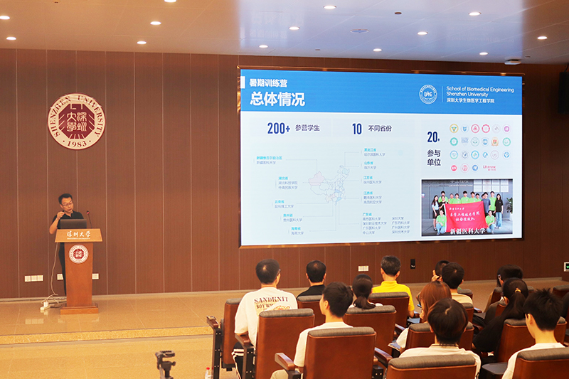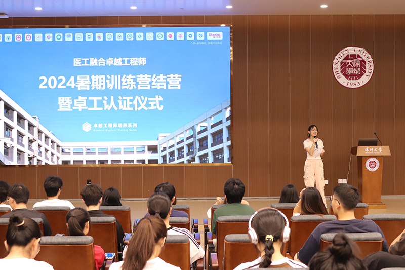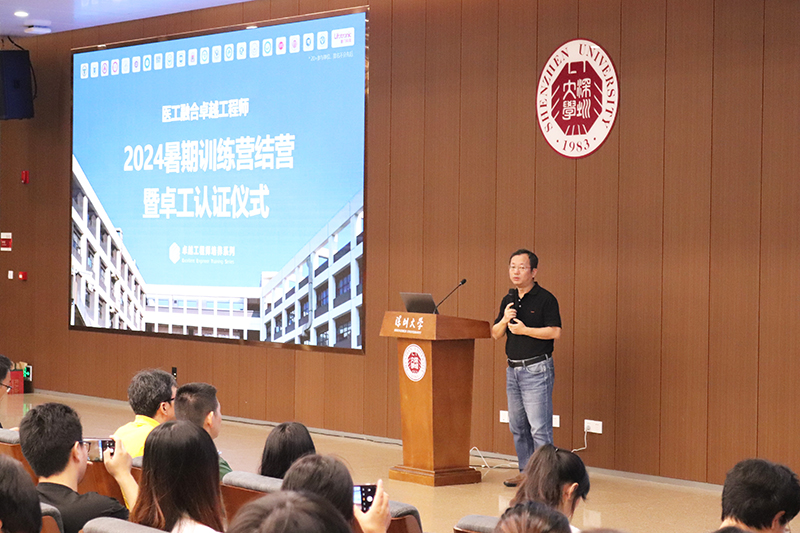 深圳大学医学部副主任、生物医学工程学院院长陈昕在结营仪式上致辞。陈昕首先向全体参与并支持此次暑期训练营的师生致以最诚挚的感谢。随后,他表示在培训过程中感受到了同学们积极向上的态度与收获满满的喜悦,并且对同学们在培训期间所取得的成果予以了认可和赞扬。为了共筑卓越工程师培养的基石,他恳切地希望参营师生就此次暑假训练营提出宝贵建议。他寄予厚望,期待每位学员能够持续学习,未来在各自学校推动多学科融合的学习模式,弘扬卓越工程师精神,使自身在专业领域具备扎实的理论基础和解决实际工程问题的能力。