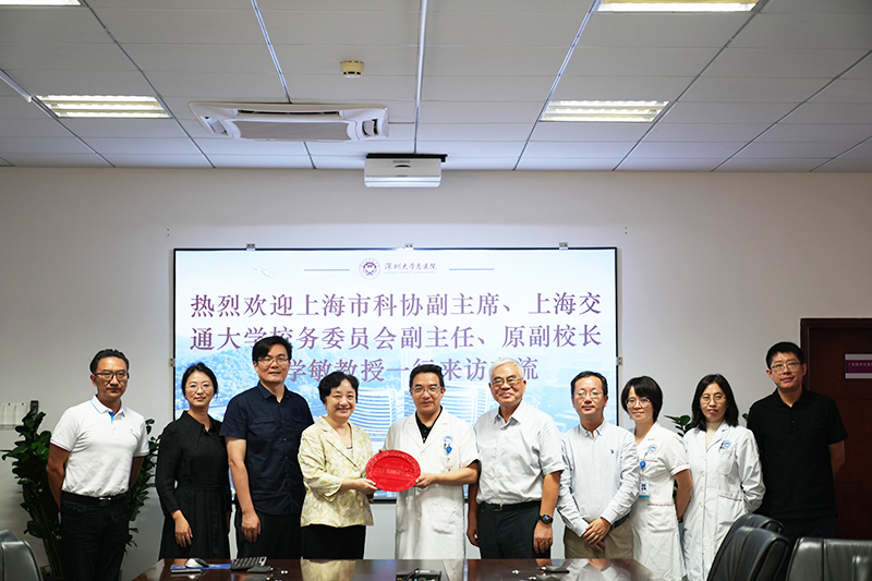 在深圳大学医学部生物医学工程学科创始人陈思平教授,深圳大学医学部副主任、生物医学工程学院院长陈昕教授陪同下,徐学敏教授一行首先到访深圳大学总医院,深圳大学总医院执行院长巩鹏、血液与肿瘤科副主任郭蒸、超声科副主任医师王艳秋、普通外科副主任医师梁博进行接待。双方围绕多模态肿瘤治疗技术的临床转化应用,深入探讨了上海交通大学生物医学工程学科的科技创新及成果转化,以及进一步在深圳大学总医院开展临床研究的可行性。