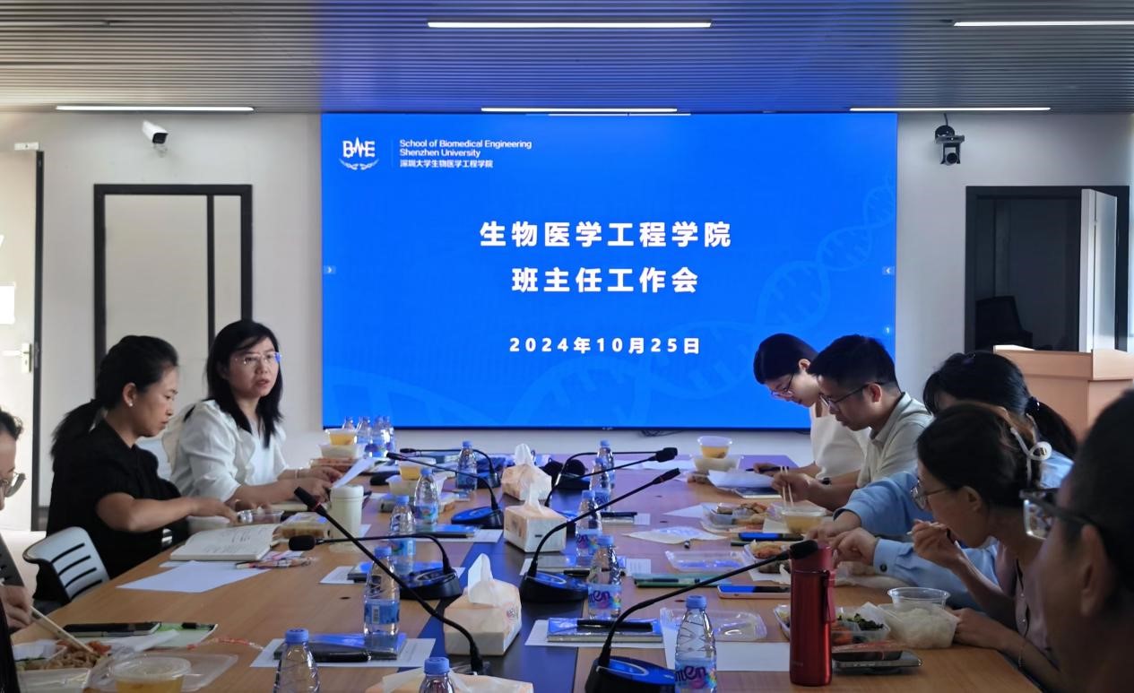 Careers2024年10月25日中午,生物医学工程学院在深圳大学丽湖校区A2-517会议室举行班主任工作例会。此次例会旨在加强班主任队伍的建设,明确班主任的工作职责,提升班级管理水平,进一步推动学院本科教育的高质量发展。学院党委书记陆敏华,分管本科教学的院领导许改霞,2021级班主任牟天、黄若冰、杜杰,2022级班主任陈冕、程君,2023级班主任于妍妍,2024级张一帆、高壮强、刘忠和教学秘书刘丽参加会议,例会由陆敏华主持。