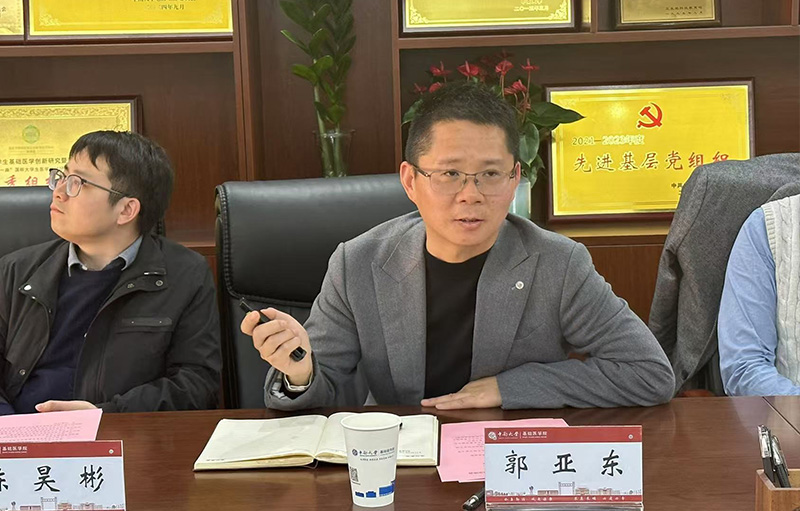 此次会议由董竹新主持。会议伊始,中南大学基础医学院副院长郭亚东致欢迎词,对深圳大学医学部生物医学工程学院一行的来访表示热烈的欢迎,并介绍了参会的各位老师。他提到,中南大学湘雅医学院正值办学110周年纪念,学院秉持开放合作的态度,期待与兄弟院校携手共进,共创辉煌。