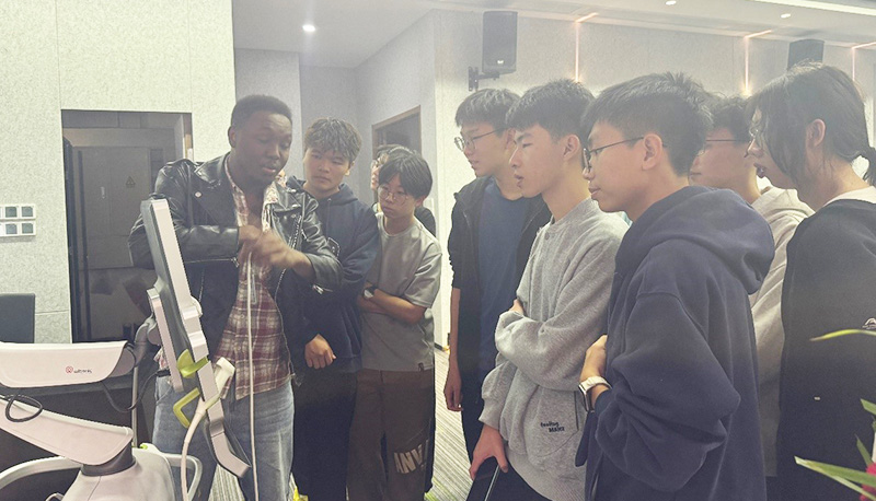 最后,师生们来到超声设备体验区,市场部同事细致讲解了设备的工作原理与操作方法。同学们纷纷亲自动手操作,深入体会到先进医疗设备背后的技术复杂性与创新性。一位同学兴奋地表示:“这次实操体验让我对超声设备的临床应用有了更直观的认识,也让我更加敬佩医疗科技所蕴含的精湛技术。”