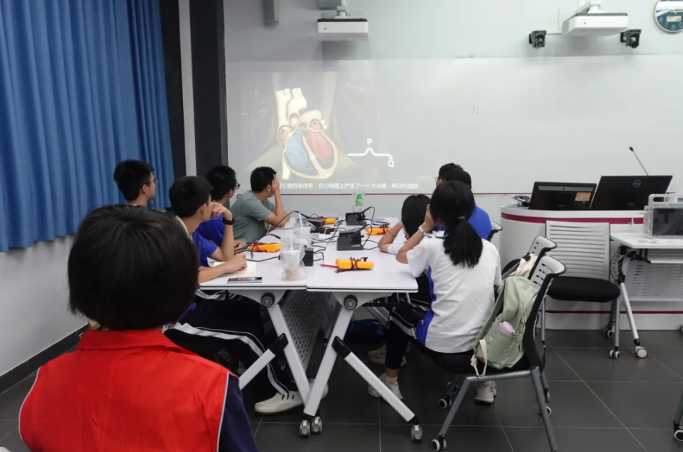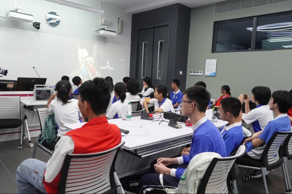 踏入实验室,深大师生向同学们逐一介绍多参数监护仪等医疗器械的核心构造——那些精密运转的传感器、复杂交织的电路网络,如同揭开神秘面纱的“生命守护者”,诉说着生物医学工程如何将工程技术融入到医疗场景的奥秘。