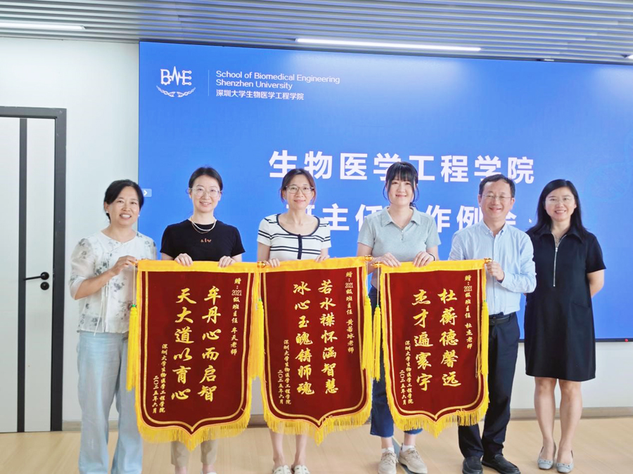 分享结束后,院长、书记向三位老师授旗,感谢他们以班主任的身份陪伴了学生大学四年的宝贵时光,以师者智慧和“知心人”的温暖引导学生积极向上,对其在学生工作中的辛勤付出给予高度肯定。