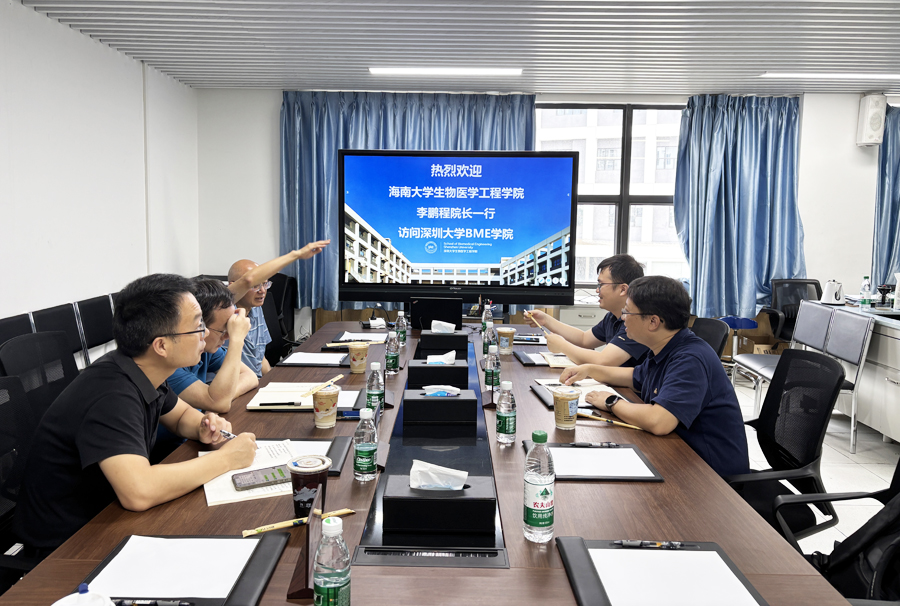 2025年6月19日上午,海南大学生物医学工程学院院长李鹏程、副院长蔡夫鸿一行到访深圳大学医学部生物医学工程学院,与深圳大学医学部副主任、生物医学工程学院院长陈昕、教学实验中心主任汪天富、副主任董磊,就实践教学等相关话题进行交流探讨。