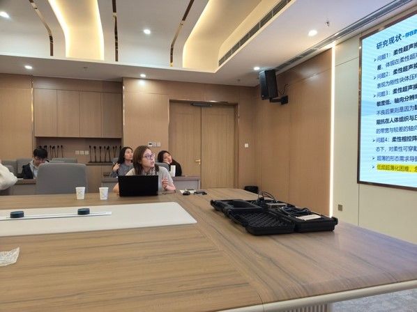 之后,与重点实验室相关老师和同学们还充分交流了硅基SOI键合工艺研制的cMUT超声换能器的设计结构、成像效果,以及基于MEMS工艺的双压电层高频高灵敏度pMUT超声换能器的设计研究。