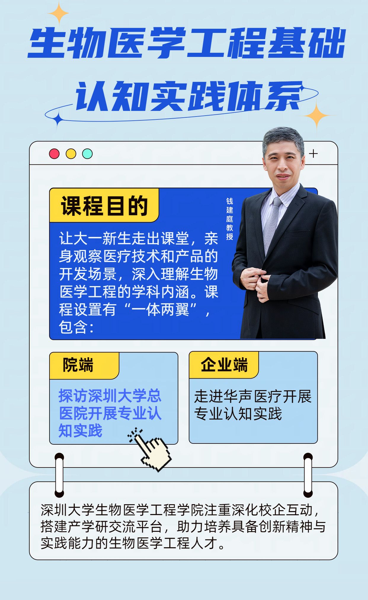 深圳大学生物医学工程学院始终致力于深化产教融合与医工交叉。通过系列化的认知实践,学院不仅帮助学生夯实专业思想,更引导他们早立报国之志,将个人发展与国家在高端医疗装备领域的战略需求紧密结合,为培养未来解决“卡脖子”难题的卓越工程人才奠定坚实基础。