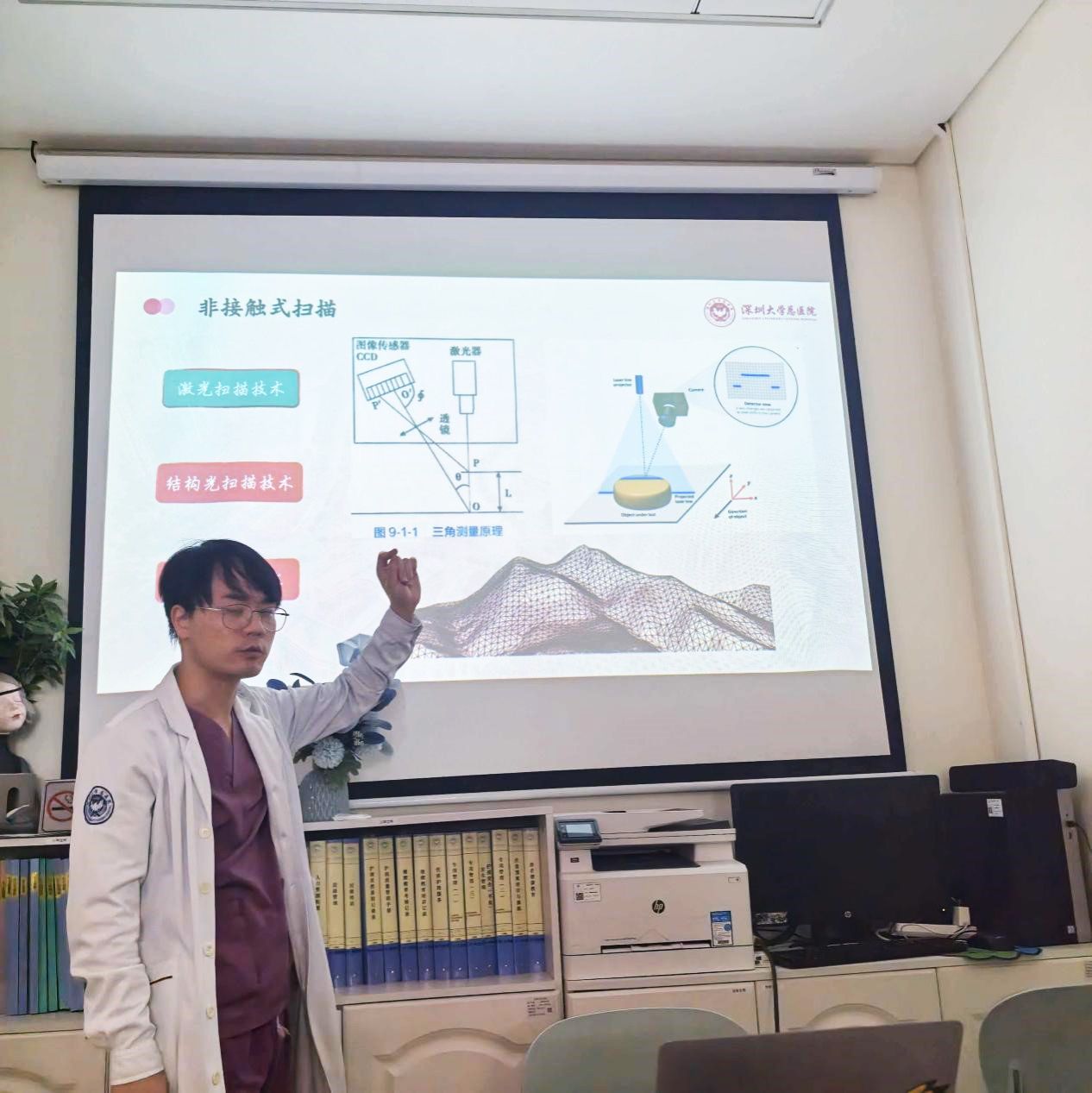 口腔科的参观给同学们留下了尤为深刻的印象。医生通过一例真实的口腔癌患者诊疗案例,生动展示了从CBCT影像获取、三维激光扫描到数字化设计、3D打印制作个性化修复体的完整技术链条。技术的应用不仅帮助患者恢复了吞咽、语言等基本功能,更通过精巧的面部赝复体,守护了患者的尊严与生活质量。有同学在报告中写道:“技术不再是冰冷的,它被赋予了深刻的人文关怀,这让我看到了自己专业的温度与使命。”