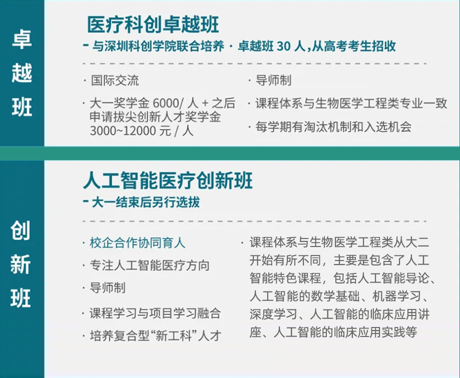 • 特色办学:教研资源丰富,课程体系完善,涵盖高端医疗器械、人工智能医疗和纳米精准诊疗等特色方向,定位高端