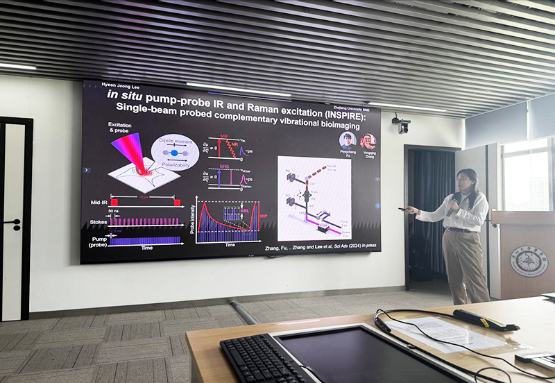 最后,Hyeon Jeong Lee 研究员还提及了三维光谱成像为更准确地评估生物系统中的分子变化提供了契机,并介绍了其最新进展。在交流互动环节,师生们积极踊跃提问,Hyeon Jeong Lee 研究员对大家的问题逐一进行了详细解答。