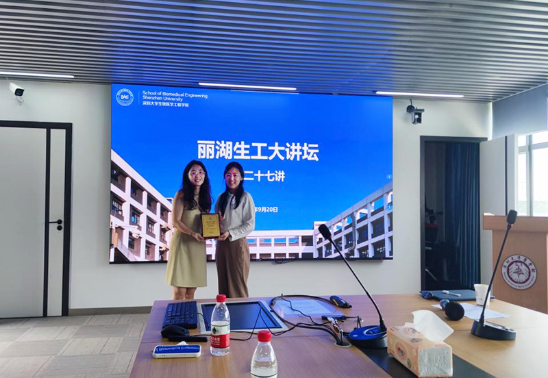 医学部苏文副教授向主讲嘉宾Hyeon Jeong Lee研究员颁发“丽湖生工大讲坛”荣誉证书