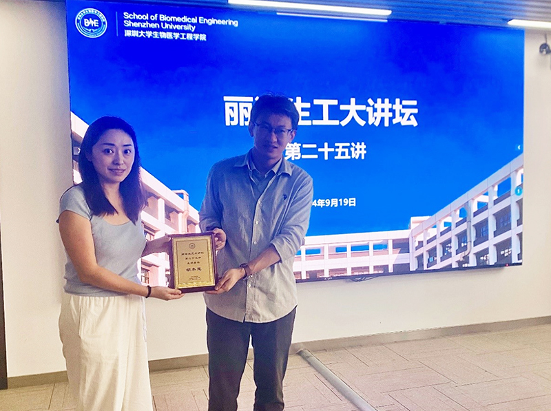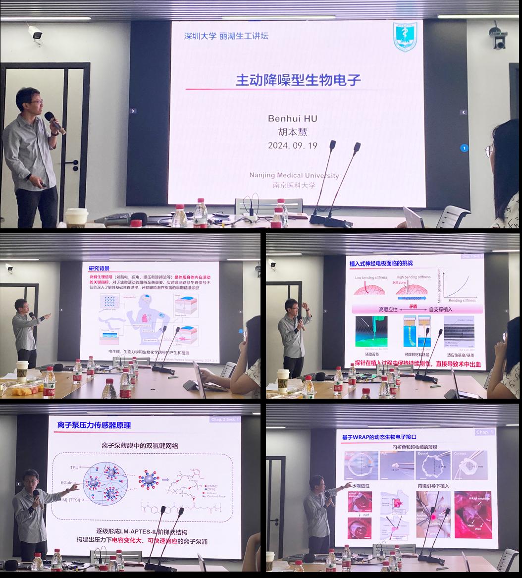 2024年9月19日下午,应深圳大学医学部生物医学工程学院孔湉湉教授邀请,南京医科大学胡本慧教授作客“丽湖生工大讲坛”,作为第二十五讲嘉宾,为我院师生带来题为“新医科背景下的医工交叉:主动降噪型生物电子”的主题报告。