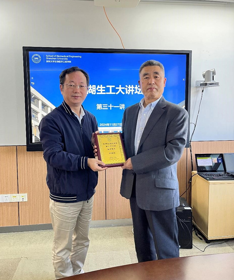 2024年11月27日上午,应深圳大学医学部生物医学工程学院徐海华副教授邀请,英国伦敦大学学院(University College London,简称:UCL)刘朝宗教授作客“丽湖生工大讲坛”,作为第三十一讲嘉宾,为我院师生带来题为“UCL Orthopaedic Bioengineering: Address Unmet Clinical Needs”的主题报告。此次讲座吸引了来自医学部生物医学工程学院及基础医学院的众多师生参加。