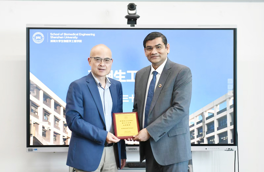 2025年4月3日上午,应深圳大学医学部生物医学工程学院金永东教授邀请,国际先进材料学会(IAAM)现任秘书长Ashutosh Tiwari教授携其夫人Suda女士做客“丽湖生工大讲坛”,作为第三十五讲嘉宾,在丽湖校区A6-911会议室为师生带来题为“Advances in integrated biosensing for digital health and environmentally sustainable diagnostics”的主题讲座。本次讲座吸引了医学部众多师生积极参与。