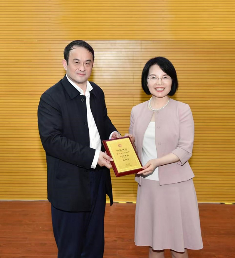 周辉副校长为肖瑞平教授颁发“深医讲坛”荣誉奖牌