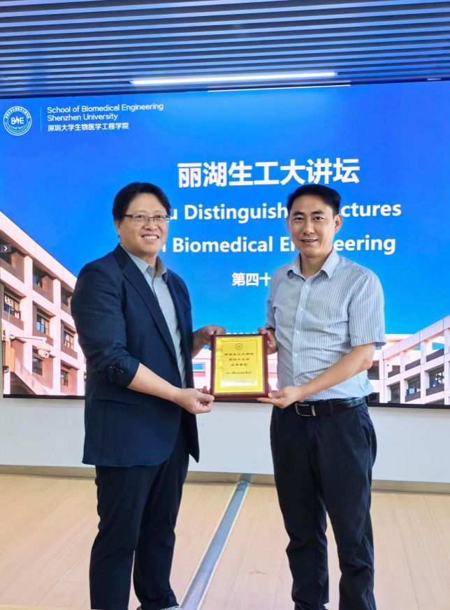2025年10月17日上午,应深圳大学医学部生物医学工程学院黄鹏教授邀请,韩国蔚山国家科学技术研究所的Ja-Hyoung Ryu教授作为“丽湖生工大讲坛”的第四十五讲嘉宾,在丽湖校区A2-517会议室进行了题为“Intracellular Chemical Reaction-Induced Self-Assembly to Control Cellular Fate”的专题报告,吸引了多个学院众多师生的积极参与。