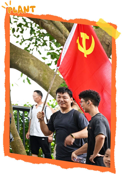 登顶塘朗山后,党员同志们在党旗前庄严宣誓,重温入党誓词,进一步坚定理想信念,牢记初心使命。随后,宣传委员带领大家结合实际工作,围绕“如何发挥党员先锋模范作用,助力科技强国战略”开展了交流研讨,激发了青年党员以实际行动服务社会、服务人民、服务国家战略的责任感和使命感。