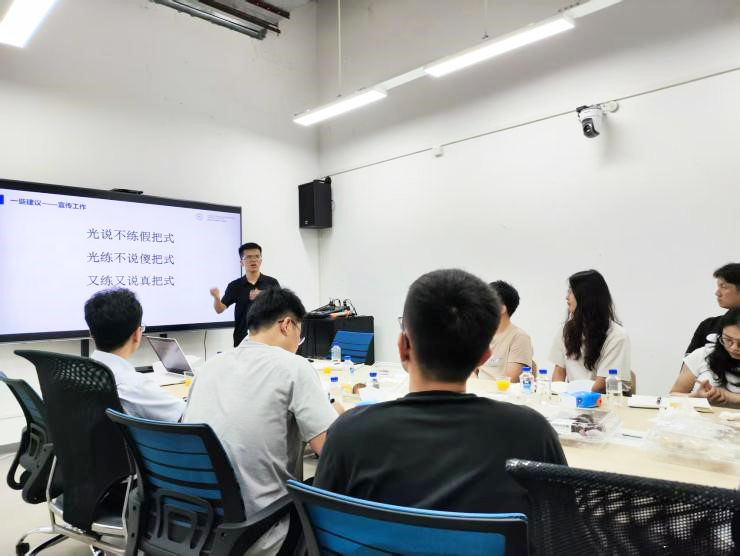接着,2024届毕业生党员、原生工研究生支部副书记庄锦湖同志进行了经验分享,对党建活动和学习活动进行了典型案例分享,并提出了一些建议。庄同志在本科期间入党初始便主动开展“身边榜样”分享会、社区“周末值班”和“知识课堂”等活动,从零到有,从有到壮大,逐步发展成了学生支部的特色活动。他告诉我们,“柴备好了,只缺一个点火的!大家都是愿意干事的”,这启迪我们只要有想法,合理合规,就可以行动起来,积极号召身边同志一起把活动办下来。