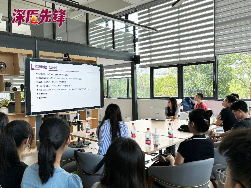 肖婷师姐向大家分享了自己工作经历。此外,重点分享了如何针对不同单位准备简历,不同单位的着重点有所不同,如企业更关注对项目的熟悉程度和相关技能,医院更关注个人的能力,如沟通交流、写作水平等。还有在面试前期需要做的准备工作,提前准备好面试前可能会问的问题,以及熟悉自己的简历。此外,信息渠道很重要,关注相应企业的公众号、官网,以及一些就业小程序,如华南医招、丁香人才,还有企业的线下宣讲等。最后还分享了企业和医院的招聘流程。