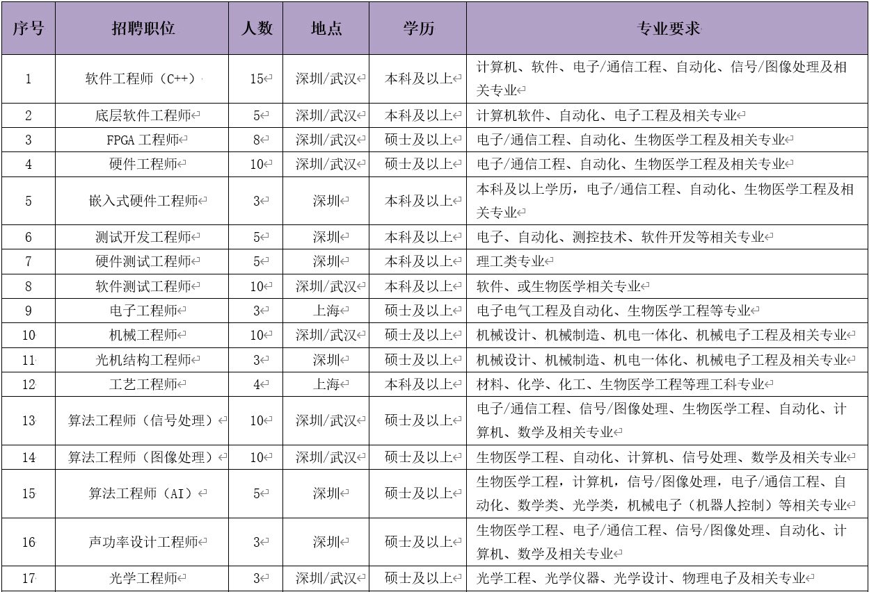 在医疗器械这个持续成长的行业里,我们坚持以人为本的企业文化,创造一个让人才能够充分施展才华的平台和空间,促进企业的发展和员工的人生及职业梦想的实现,共同开创人类大健康事业新局面,为民族医疗事业做出贡献! (详情请点击http://www.sonoscape.com.cn/)