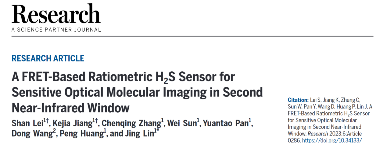 Careers近日,深圳大学医学部生物医学工程学院林静特聘教授团队在Science合作期刊Research(影响因子11,中科院一区,TOP期刊)上发表了题为“A FRET-Based Ratiometric H2S Sensor for Sensitive Optical Molecular Imaging in Second Near-Infrared Window”的研究论文。医学部副研究员雷珊、研究生姜珂佳为共同第一作者,林静教授为通讯作者,深圳大学为唯一完成单位。