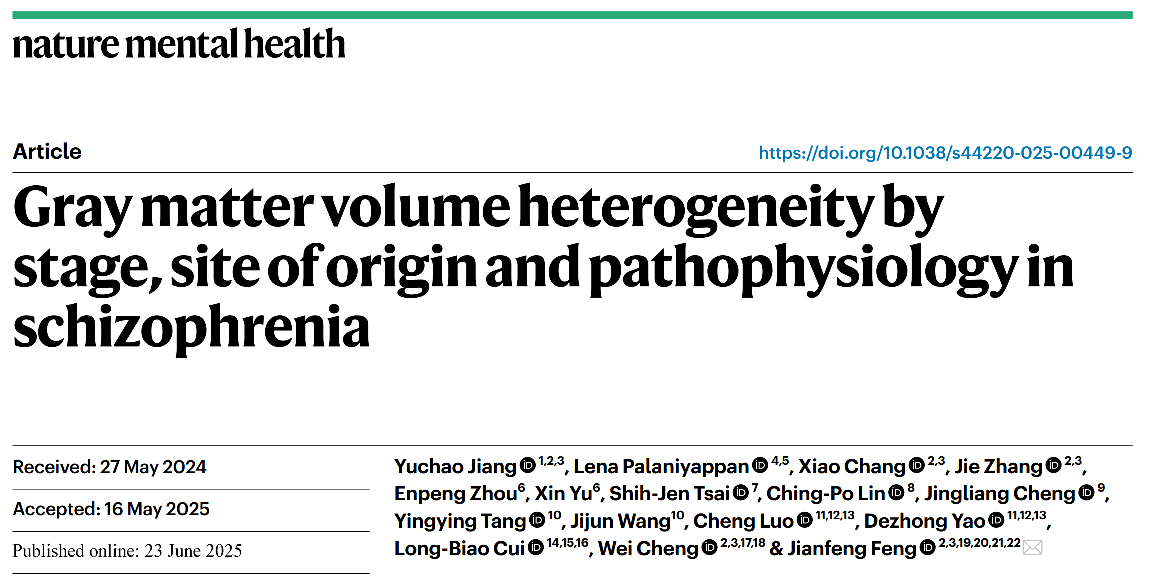 Careers近日,深圳大学医学部生物医学工程学院蒋宇超助理教授在国际期刊Nature Mental Health上发表了题为“Gray matter volume heterogeneity by stage,site of origin and pathophysiology in schizophrenia”的研究论文。深圳大学医学部蒋宇超助理教授为第一作者,复旦大学冯建峰教授为通讯作者,深圳大学为第一单位。