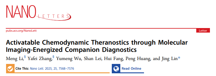 Careers深圳大学医学部生物医学工程学院林静特聘教授团队在Nature Index期刊Nano Letters(影响因子9.1)上发表了题为“Activatable Chemodynamic Theranostics through Molecular Imaging-Energized Companion Diagnostics”的研究论文。