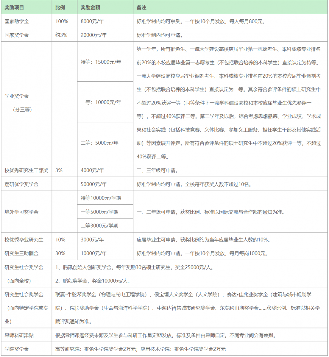 生物医学工程学院高度重视学生奖助工作,结合学院学科专业特点建立了完善的奖助学金体系和科学的奖助学金评选机制。按照我校奖助政策体系,以全日制学习方式的非定向硕士研究生一年获得的奖助学金均不少于8000元,表现优异的将不少于6万元,如累计学校现有国家助学金、荔研优学奖学金、社会(企业)奖学金等,一年所获奖助学金可超过10万元。